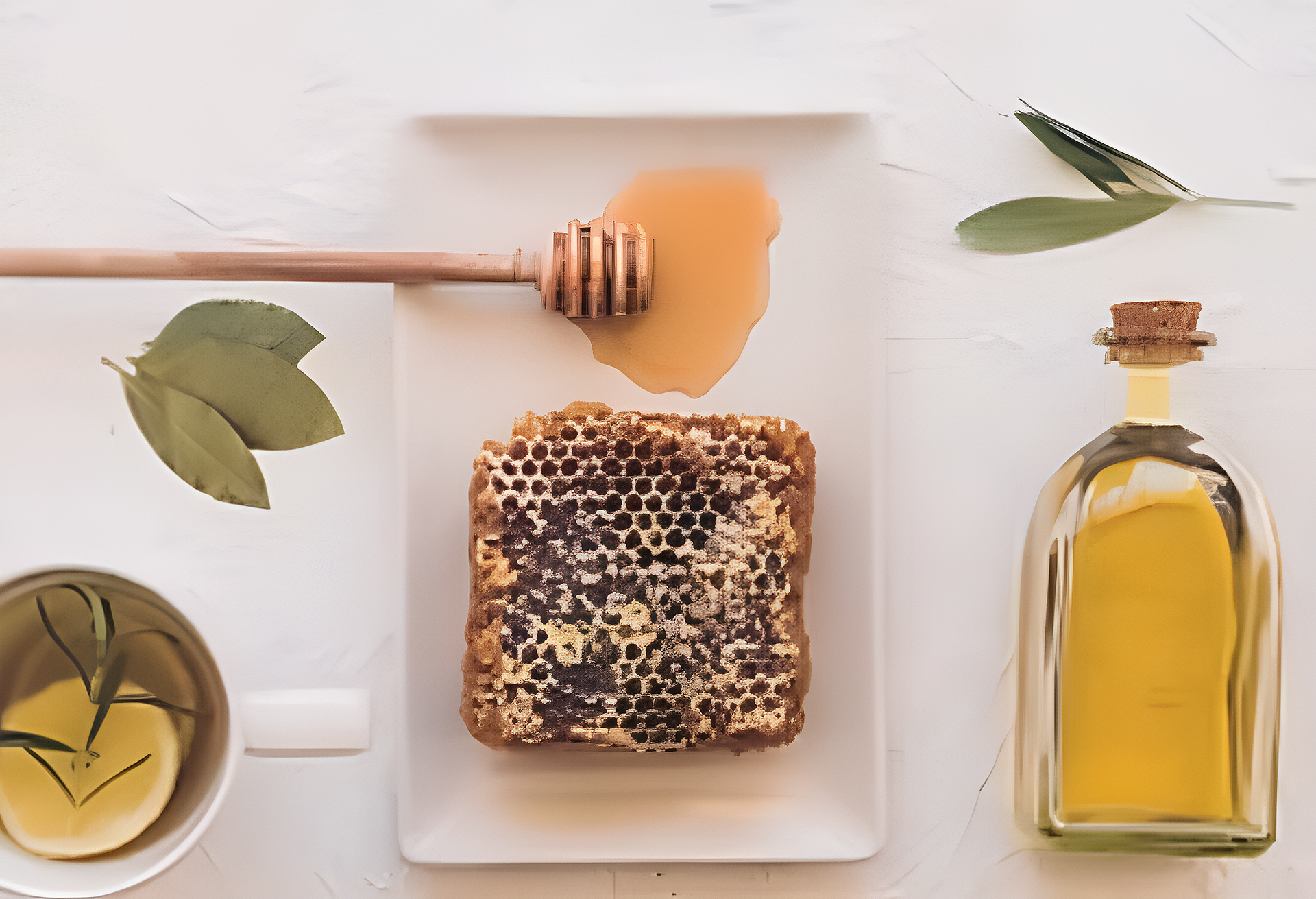 Helado de laurel, aceite de oliva virgen extra y miel de romero